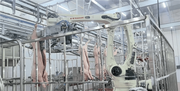 正在修文县悠久街道的现代化屠宰车间内,一场关于猪肉的“科技”正正在上演。3条从动化出产线高速运转,机械人精准地将一头猪分化,工人们随后进行精细化朋分。公司总司理周天池引见,这条出产线头,效率是保守屠宰场的3倍,而人工成本仅为保守屠宰场的三分之一。